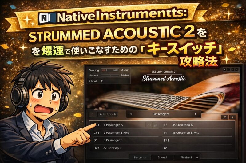 プラグイン音源 NativeInstruments:STRUMMED ACOUSTIC 2を爆速で使いこなすための「キースイッチ」攻略法
