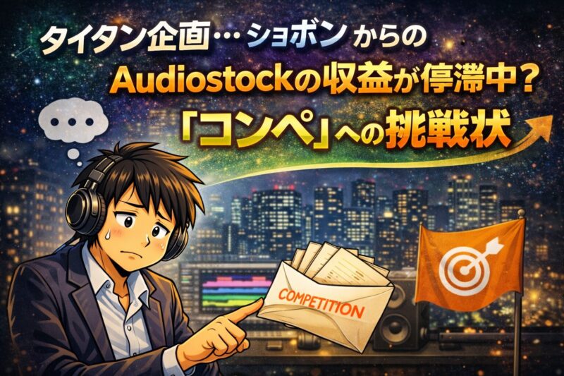 「曲を増やせば報酬が増える」説はもう古い?Audiostockでの収益停滞を感じる筆者が、タイタン企画落選を経て「コンペ」の重要性を考察。1曲7,260円という高単価なコンペ採用を目指し、制作スタイルをどう変えていくべきか本音で語ります。